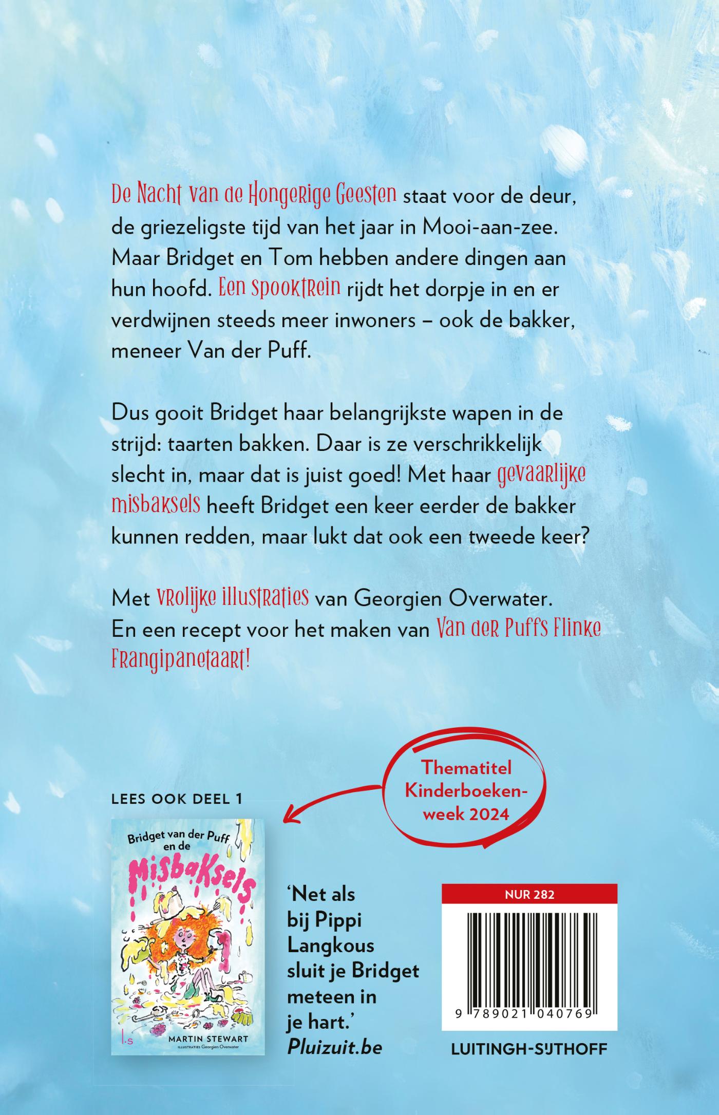 Lees na Bridget van der Puff en de misbaksels (Thematitel Kinderboekenweek 2024) van Martin Stewart gauw verder in deel 2: Bridget van der Puff en de spooktrein. Deze vierdelige serie is perfect voor Roald Dahl-fans en bevat vrolijke zwart-witillustraties van Georgien Overwater. Met achter in elk deel een taartrecept.