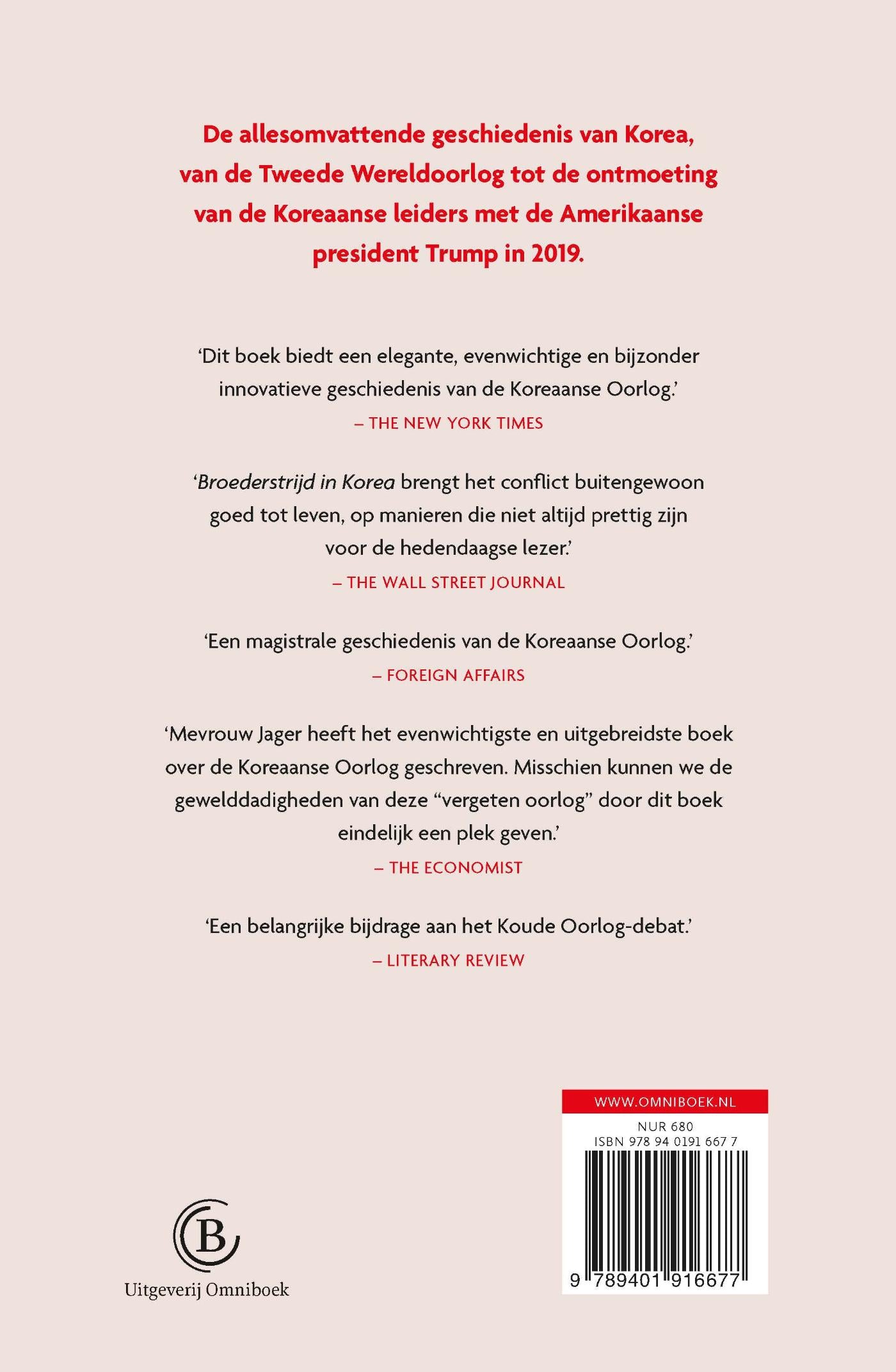 Sheila Miyoshi Jager beschrijft in Broederstrijd in Korea de geschiedenis van het oneindige conflict op het schiereiland Korea: van de Tweede Wereldoorlog tot de ontmoeting van de Koreaanse leiders met Donald Trump in 2019. Zeventig jaar na dato is de Koreaanse Oorlog nog steeds niet ten einde. Historica en hoogleraar Sheila Miyoshi Jager schrijft de allesomvattende geschiedenis van deze oorlog, die nog altijd het risico van een Derde Wereldoorlog in zich draagt. Op basis van recent vrijgegeven diplomatieke bronnen uit China, Zuid-Korea en de voormalige Sovjet-Unie analyseert Jager de militaire strategie van de oorlog op het allerhoogste niveau. Ze laat zien hoe het conflict tussen de twee Korea’s nog altijd voortduurt. Broederstrijd in Korea van Sheila Miyoshi Jager bevat 95 afbeeldingen en 16 kaarten.