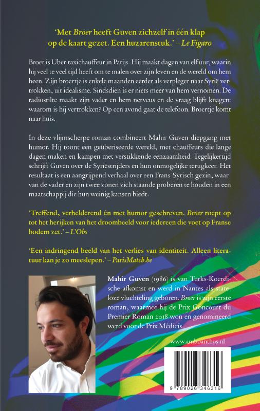 Mahir Guven wisselt in ‘Broer’ diepgang af met bijtende humor. Hij toont een ge-Uberiseerde wereld, met chauffeurs die kampen met verstikkende eenzaamheid. Tegelijkertijd schrijft hij over degenen die als jihadist vertrokken zijn naar Syrië: over de rekrutering, de gevechten, de angst voor terrorisme en de onmogelijke terugkeer naar huis.