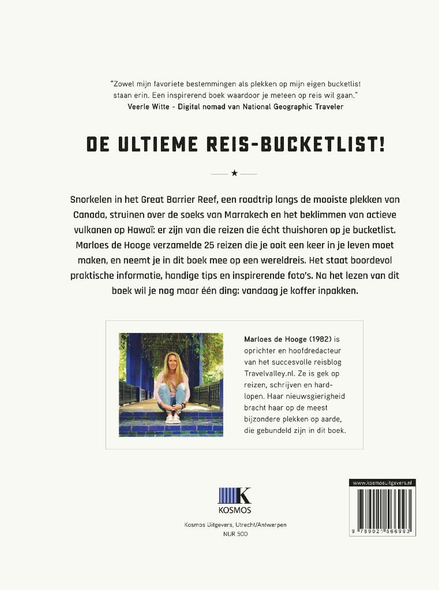 ''Zowel mijn favoriete bestemmingen als plekken op mijn eigen bucketlist staan erin. Een inspirerend boek waardoor je meteen op reis wil gaan.'' Veerle Witte - Digital nomad van National Geographic Traveler