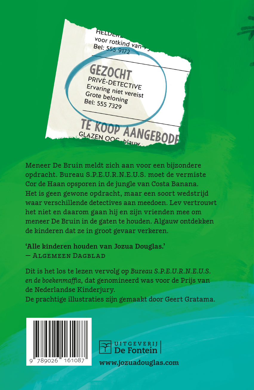 Meneer De Bruin meldt zich aan voor een bijzondere opdracht. Bureau S.P.E.U.R.N.E.U.S. moet de vermiste Cor de Haan opsporen in de jungle van Costa Banana. Het is geen gewone opdracht, maar een soort wedstrijd waar verschillende detectives aan meedoen. Lev vertrouwt het niet en daarom gaan hij en zijn vrienden mee om meneer De Bruin in de gaten te houden. Algauw ontdekken de kinderen dat ze in groot gevaar verkeren.