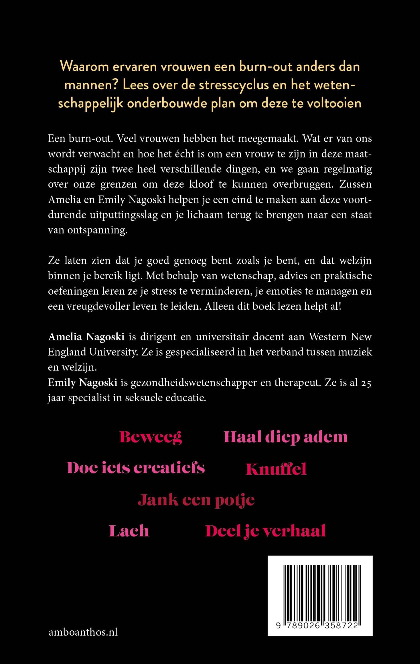Een burn-out. Veel vrouwen hebben het meegemaakt. Wat er van ons wordt verwacht en hoe het écht is om een vrouw te zijn in deze maatschappij zijn twee heel verschillende dingen, en we gaan regelmatig over onze grenzen om deze kloof te kunnen overbruggen. Zussen Amelia en Emily Nagoski helpen je een eind te maken aan deze voortdurende uitputtingsslag en je lichaam terug te brengen naar een staat van ontspanning.