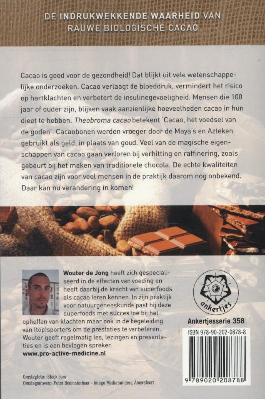 Cacao is goed voor de gezondheid! Dat blijkt uit de vele wetenschappelijke onderzoeken. Cacao verlaagt de bloeddruk, vermindert het risico op hartklachten en verbetert de insulinegevoeligheid. Mensen die 100 of ouder zijn, blijken vaak aanzienlijke hoeveelheden cacao in hun dieet te hebben. Theobroma cacao betekent 'Cacao, het voedsel van de goden'. Cacaobonen werden vroeger door de Maya's en Azteken gebruikt als geld, in plaats van goud. Veel van de magische eigenschappen van cacao gaan verloren bij verhitting en raffinering, zoals gebeurt bij het maken van traditionele chocola. De echte kwaliteiten van cacao zijn voor veel mensen in de praktijk daarom nog onbekend. Daar kan nu verandering in komen!