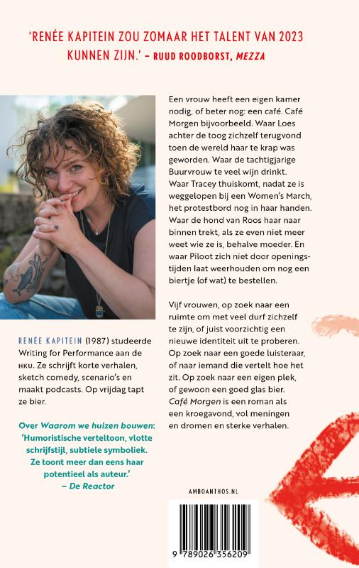 Een vrouw heeft een eigen kamer nodig, of beter nog: een café. Café Morgen bijvoorbeeld. Waar Loes achter de toog zichzelf terugvond toen de wereld haar te krap was geworden. Waar de tachtigjarige buurvrouw te veel wijn drinkt. Waar Tracey thuiskomt, nadat ze is weggelopen bij een Women’s March, het protestbord nog in haar handen. Waar de hond van Roos haar naar binnen trekt, als ze even niet meer weet wie ze is, behalve moeder. En waar Piloot zich niet door openingstijden laat weerhouden om nog een biertje (of wat) te bestellen.