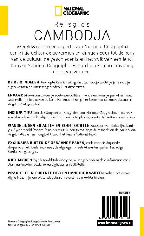 National Geographic Reisgids Cambodja is een exclusieve gids met sublieme fotografie die u meeneemt naar de bekende en minder bekende bezienswaardigheden. De experts van National Geographic nemen een kijkje achter de schermen en dringen door tot de kern van de cultuur, de geschiedenis en bijzondere plekjes van het land.