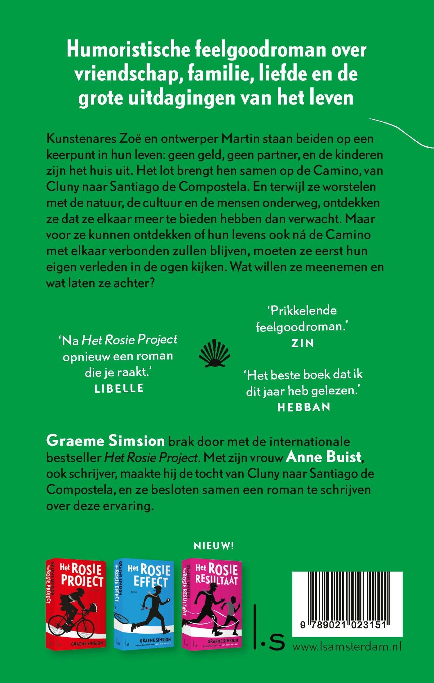 Camino van Graeme Simsion (Het Rosie Project) en Anne Buist is een humoristische feelgoodroman over vriendschap, familie, liefde en de grote uitdagingen van het leven. Wat maakt het leven de moeite waard? En wat is het verschil tussen het leven dat je leeft en het leven dat je kiest?