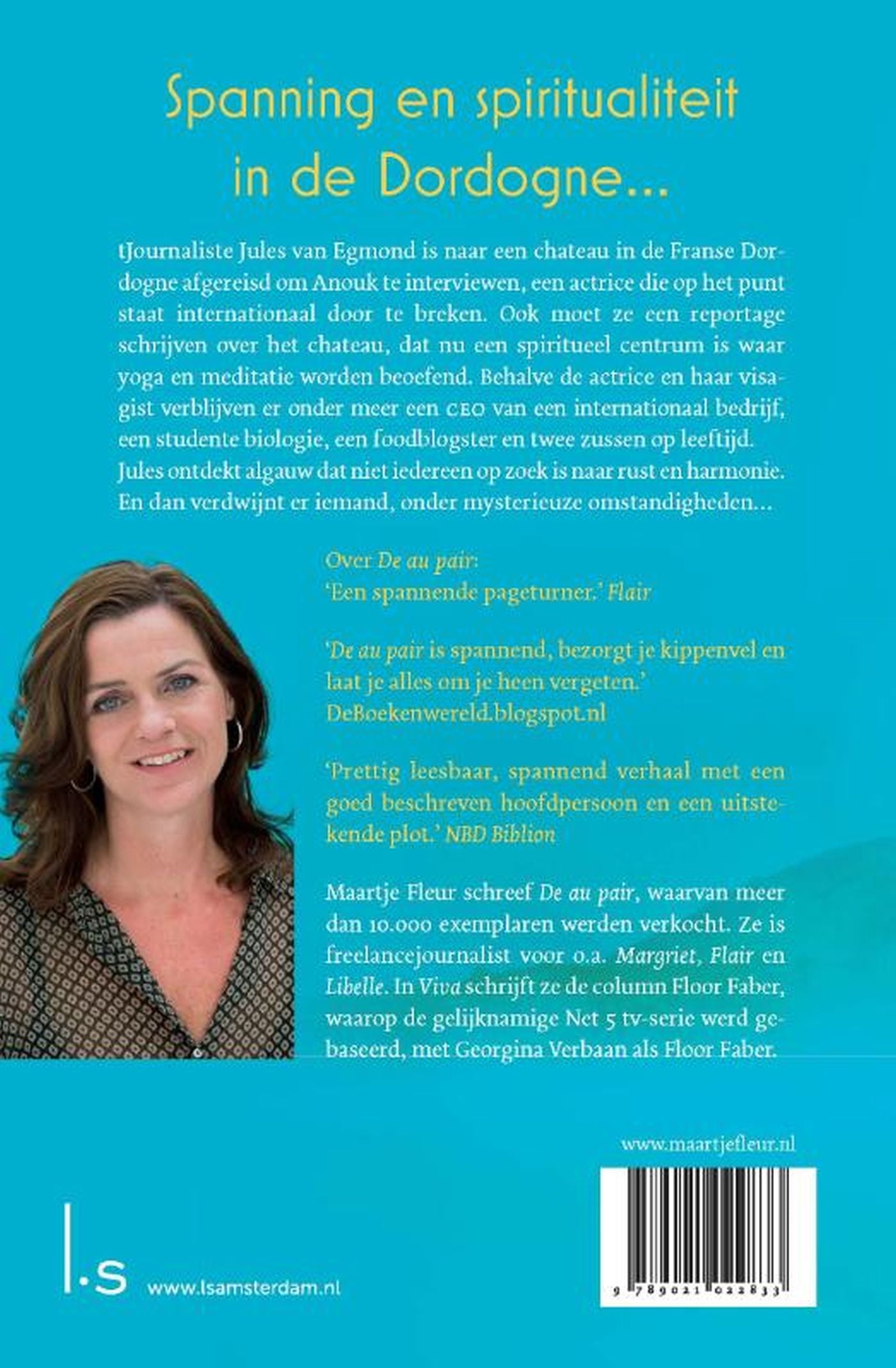 Spanning en spiritualiteit in de Dordogne... Journaliste Jules van Egmond is naar een chateau in de Franse Dordogne afgereisd om Anouk te interviewen, een actrice die op het punt staat internationaal door te breken. Ook moet ze een reportage schrijven over het chateau, dat nu een spiritueel centrum is waar yoga en meditatie worden beoefend. Naast de actrice en haar visagist verblijven er onder meer een CEO van een internationaal bedrijf, een studente diergeneeskunde, een foodblogster en twee zussen op leeftijd. Jules ontdekt algauw dat niet iedereen op zoek is naar rust en harmonie. En dan verdwijnt er iemand onder mysterieuze omstandigheden...
