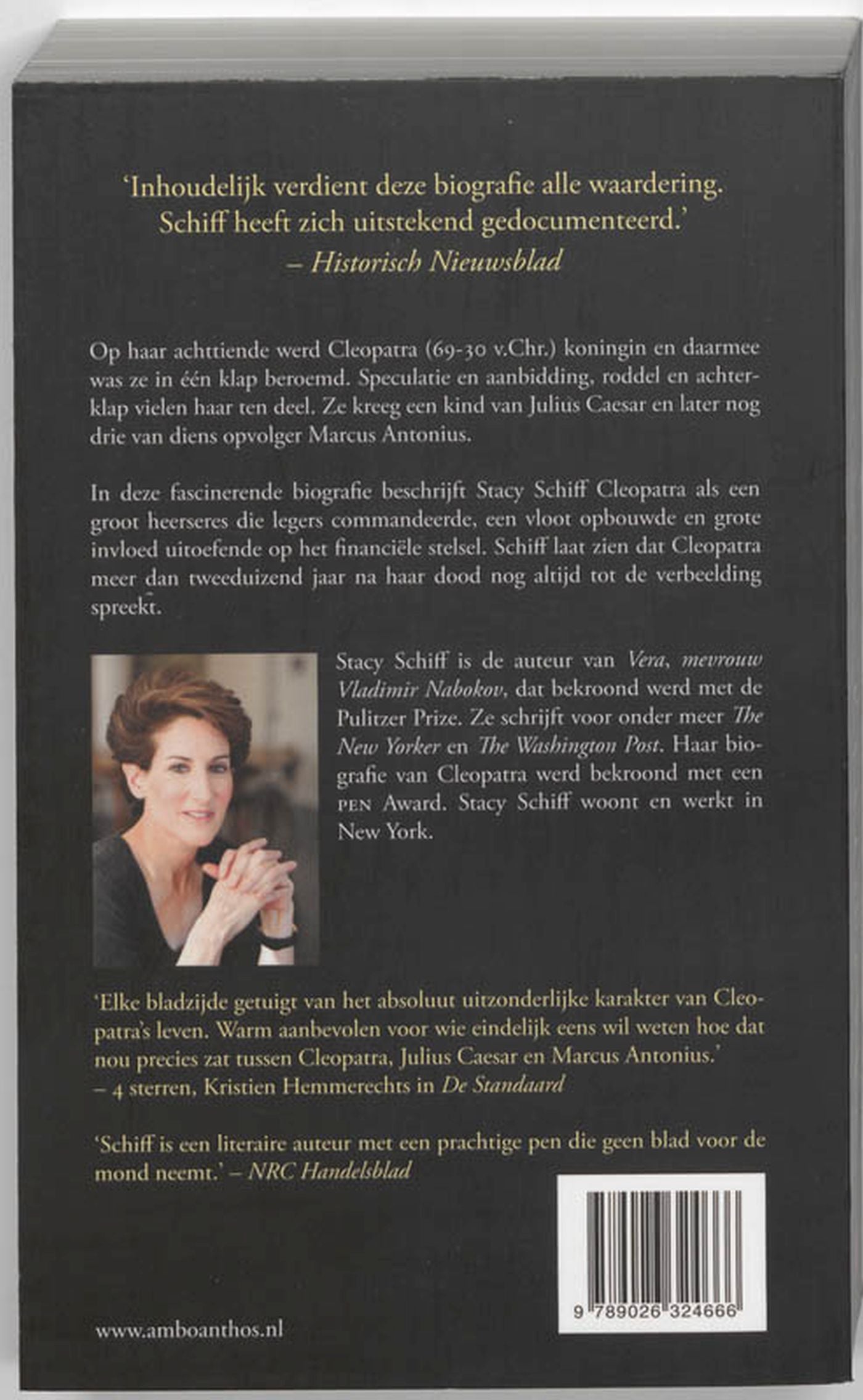 Op haar achttiende werd Cleopatra koningin en daarmee was ze in één klap beroemd. Speculatie en aanbidding, roddel en achterklap vielen haar ten deel. Ze kreeg een kind van Julius Caesar en later nog drie kinderen van diens opvolger Marcus Antonius. Op haar 39ste vond ze de dood.