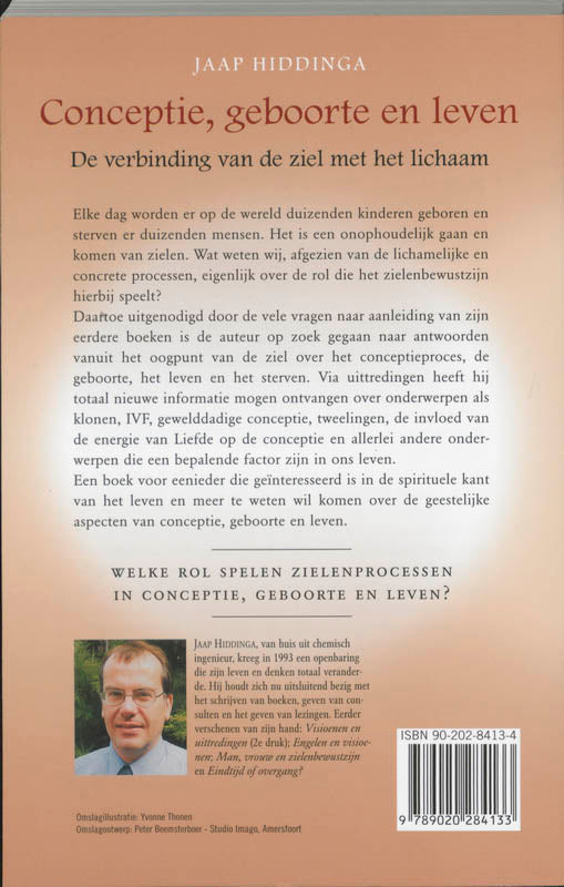 Elke dag worden er op de wereld duizenden kinderen geboren en sterven er duizenden mensen. Het is een onophoudelijk gaan en komen van zielen. Wat weten wij, afgezien van de lichamelijke en concrete processen, eigenlijk over de rol die het zielenbewustzijn hierbij speelt? Daartoe uitgenodigd door de vele vragen naar aanleiding van zijn eerdere boeken is de auteur op zoek gegaan naar antwoorden vanuit het oogpunt van de ziel over het conceptieproces, de geboorte, het leven en het sterven. Via uittredingen heeft hij totaal nieuwe informatie mogen ontvangen over onderwerpen als klonen, IVF, gewelddadige conceptie, tweelingen, de invloed van de energie van Liefde op de conceptie en allerlei andere onderwerpen die een bepalende factor zijn in ons leven.