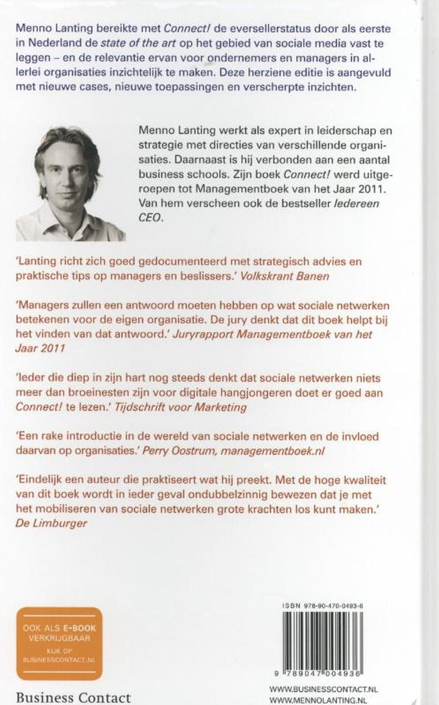 Menno Lanting bereikte met Connect! de eversellerstatus door als eerste in Nederland de state of the art op het gebied van sociale media vast te leggen - en de relevantie ervan voor ondernemers en managers in allerlei organisaties inzichtelijk te maken. Deze herziene editie is aangevuld met nieuwe cases, nieuwe toepassingen en verscherpte inzichten.