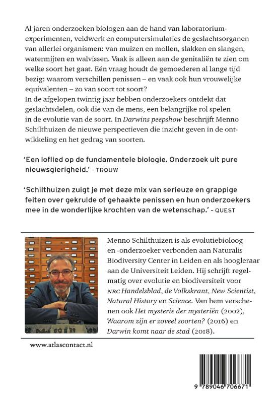 In de afgelopen twintig jaar hebben onderzoekers ontdekt dat geslachtsdelen, ook die van de mens, een belangrijke rol spelen in de evolutie van de soort. In Darwins peepshow beschrijft Menno Schilthuizen de nieuwe perspectieven die inzicht geven in de ontwikkeling en het gedrag van soorten.