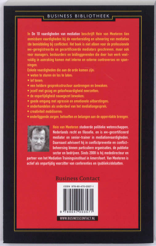 In De 10 vaardigheden van mediation beschrijft Hein van Meeteren tien onmisbare vaardigheden bij bemiddeling bij conflicten. Het boek is geschreven voor managers, bestuurders en leidinggevenden die door hun werk veelvuldig in aanraking komen met interne en externe conflicten en spanningen.