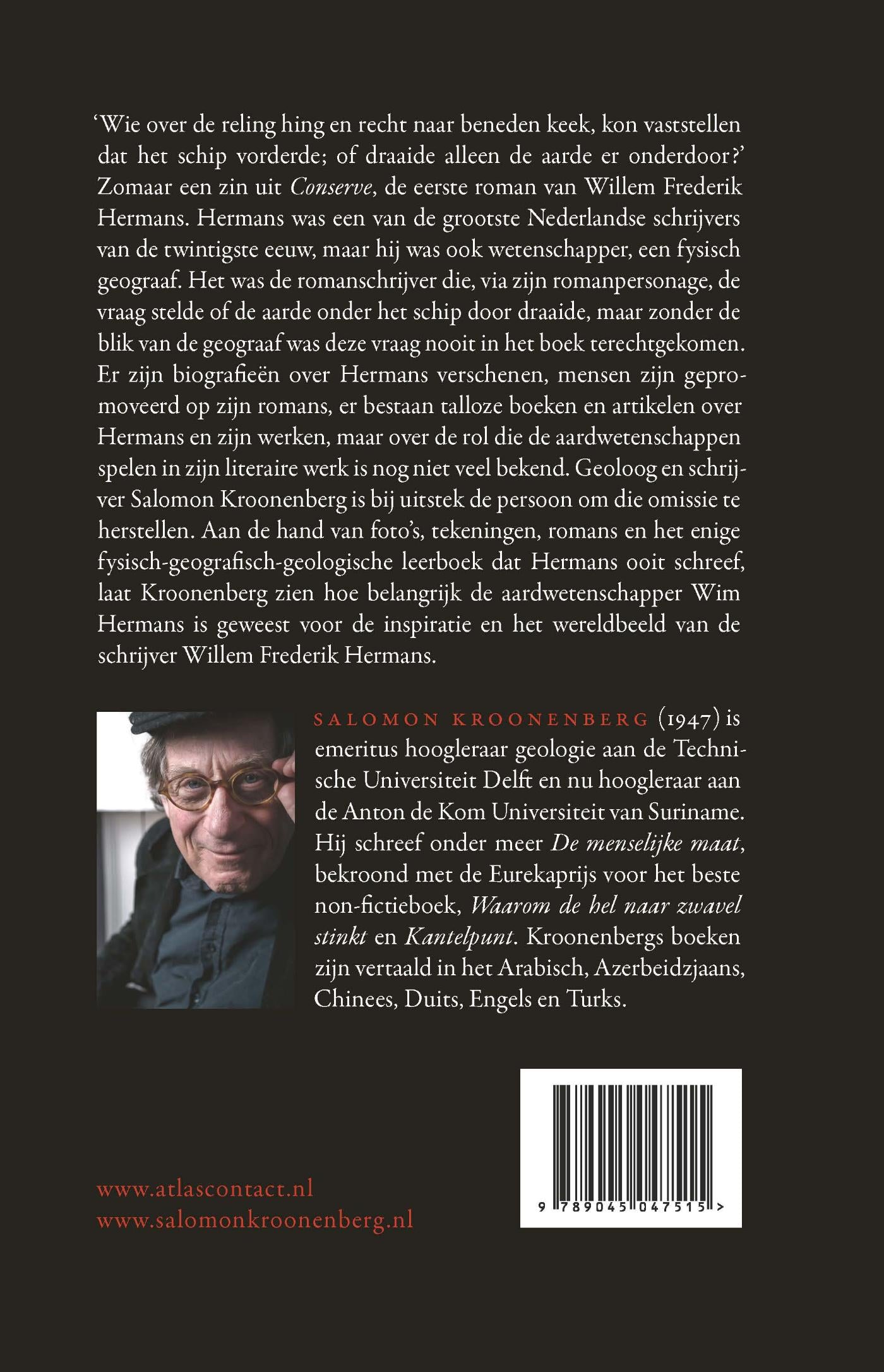 In ‘De aarde volgens W.F. Hermans’ vertelt geoloog en schrijver Salomon Kroonenberg over het belang van de geologie voor het schrijverschap en wereldbeeld van Willem Frederik Hermans. Hermans was een van de grootste Nederlandse schrijvers van de twintigste eeuw, maar hij was ook wetenschapper, een fysisch geograaf. Er zijn talloze boeken, artikelen en biografieën over hem verschenen, maar over de rol die de aardwetenschappen spelen in zijn literaire werk is nog niet veel bekend. Kroonenberg toont overtuigend aan dat ook de fysisch-geografische en geologische context van Hermans’ werken onze volle aandacht verdient.