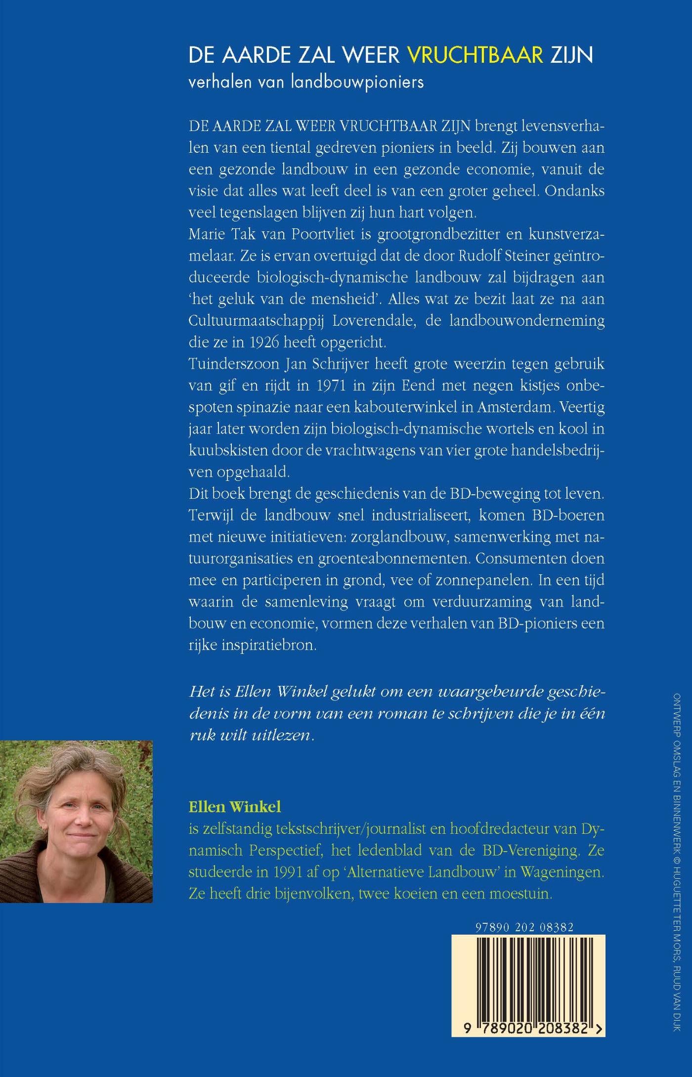 Verhalen van landbouwpioniers Unieke geromantiseerde non-fictie in literaire stijl Dit boek brengt de levensverhalen van enkele gedreven pioniers in beeld. Vanuit de visie dat alles een samenhangend levend geheel vormt, gaan zij op zoek naar een nieuwe landbouw in een nieuwe economie. De auteur brengt de geschiedenis van de BD-beweging tot leven. In een tijd waarin de landbouw snel industrialiseert, komen BD-boeren met: zorglandbouw, samenwerking met natuurorganisaties, groenteabonnementen en samenwerkingsvormen, waarbij consumenten participeren in grond, vee of zonnepanelen.