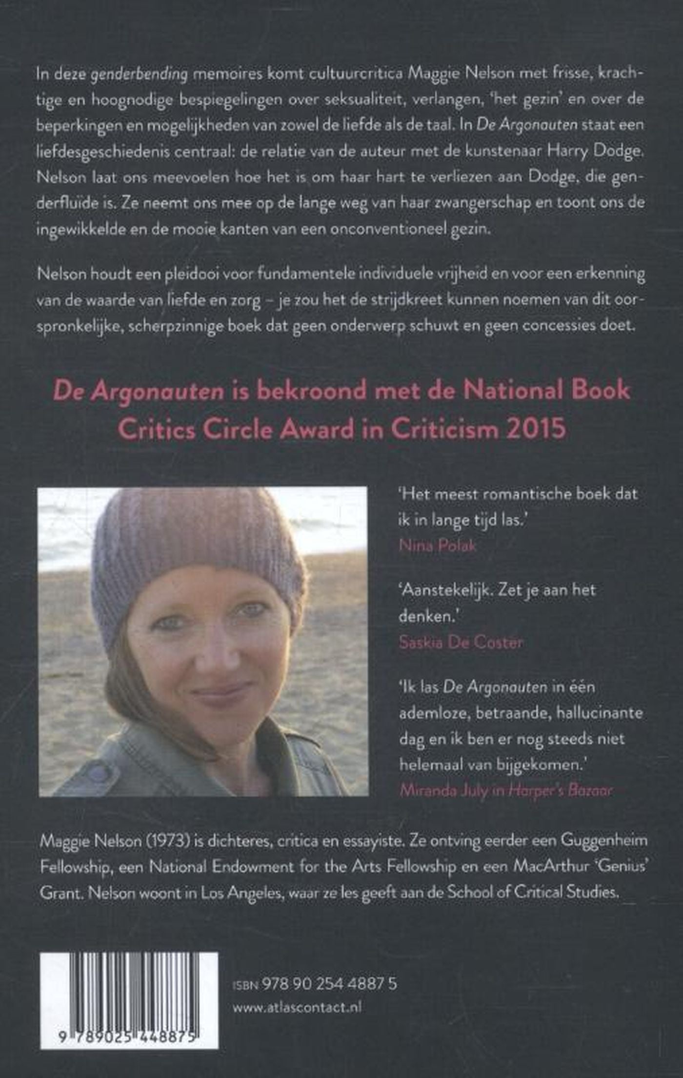In deze genderbending memoires komt cultuurcritica Maggie Nelson met frisse, krachtige en hoognodige bespiegelingen over seksualiteit, verlangen, ‘het gezin’ en over de beperkingen en mogelijkheden van zowel de liefde als de taal. In De Argonauten staat een liefdesgeschiedenis centraal: de relatie van de auteur met de kunstenaar Harry Dodge. Nelson laat ons meevoelen hoe het is om haar hart te verliezen aan Dodge, die genderfluïde is. Ze neemt ons mee op de lange weg van haar zwangerschap en toont ons de ingewikkelde en de mooie kanten van een onconventioneel gezin. Nelson houdt een pleidooi voor fundamentele individuele vrijheid en voor een erkenning van de waarde van liefde en zorg – je zou het de strijdkreet kunnen noemen van dit oorspronkelijke, scherpzinnige boek dat geen onderwerp schuwt en geen concessies doet.