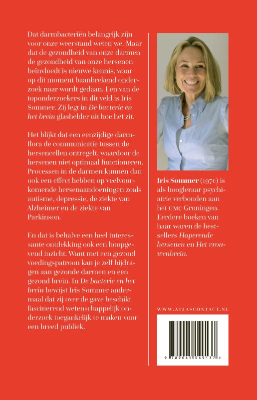 Zo blijkt dat eenzijdige darmflora het afweersysteem en de communicatie tussen hersencellen ontregelt, waardoor de hersenen niet optimaal functioneren. Processen in de darmen hebben daardoor effect op veelvoorkomende hersenaandoeningen zoals schizofrenie, bipolaire stoornis, de ziekte van Alzheimer en de ziekte van Parkinson. En dat is behalve een heel interessante ontdekking ook een hoopgevend inzicht. Met een gezond voedingspatroon kan je zelf bijdragen aan gezonde darmen en een gezond brein. In De bacterie en het brein bewijst Iris Sommer andermaal dat zij over de gave beschikt fascinerend wetenschappelijk onderzoek toegankelijk te maken voor een breed publiek.