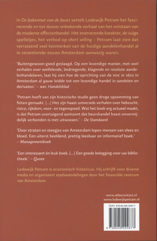 In 'De bakermat van de beurs' vertelt Lodewijk Petram het fascinerende en tot dusver onbekende verhaal van het ontstaan van de moderne effectenhandel. Het enerverende karakter, de vuige spelletjes, het verbod op short selling. Petram laat zien dat verrassend veel kenmerken van de huidige aandelenhandel al in zeventiendeeeuws Amsterdam aanwezig waren.