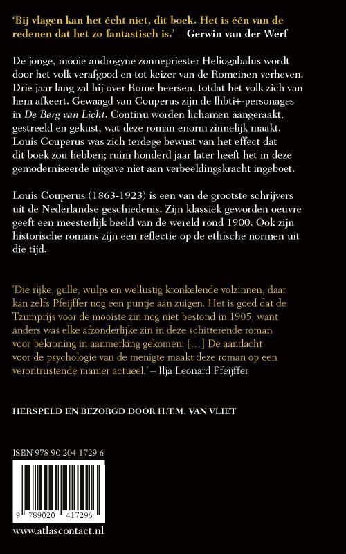 De jonge, mooie androgyne zonnepriester Heliogabalus wordt door het volk verafgood en tot keizer van de Romeinen verheven. Drie jaar lang zal hij over Rome heersen, totdat het volk zich van hem afkeert. Gewaagd van Couperus zijn de lhbti+-personages in De Berg van Licht. Continu worden lichamen aangeraakt, gestreeld en gekust, wat deze roman enorm zinnelijk maakt. Louis Couperus was zich terdege bewust van het effect dat dit boek zou hebben; ruim honderd jaar later heeft het in deze gemoderniseerde uitgave niet aan verbeeldingskracht ingeboet.