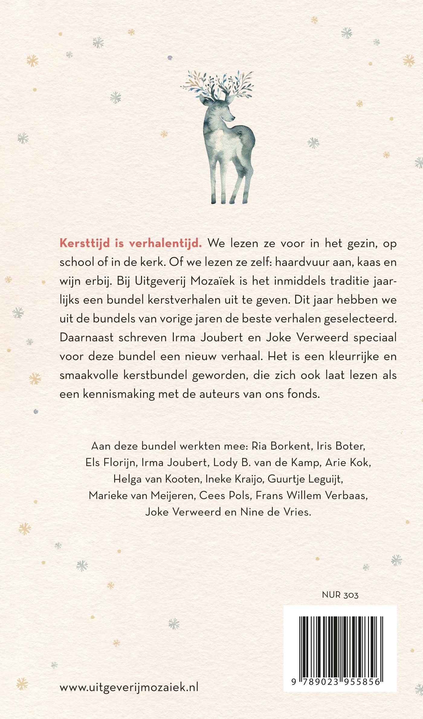 De beste kerstverhalen van Mozaïek van Irma Joubert, Guurtje Leguijt, Arie Kok, Frans Willem Verbaas, Joke Verweerd e.a. bevat een keuze van de beste kerstverhalen van de fondsauteurs van Uitgeverij Mozaïek, aangevuld met twee fonkelnieuwe verhalen.