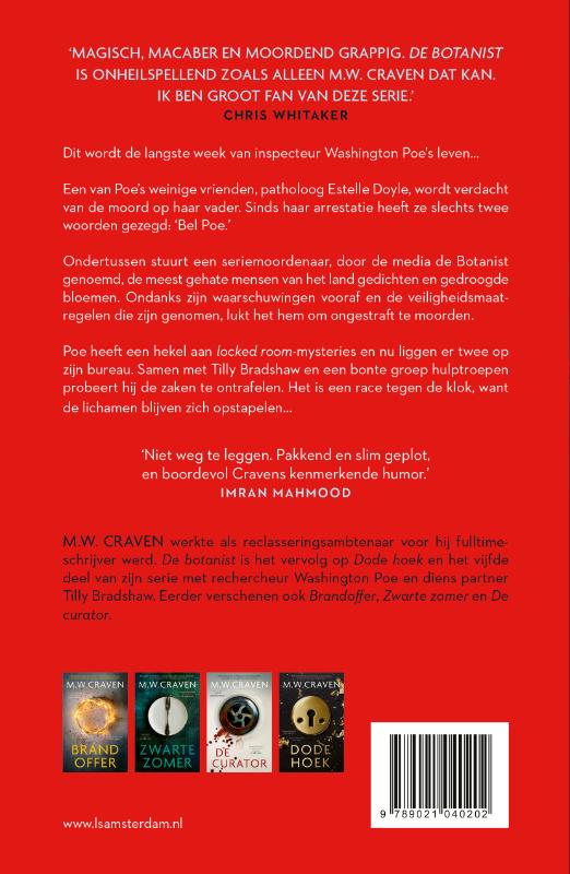 In De Botanist brengt M. W. Craven het slimme rechercheursduo Washington Poe en Tilly Bradshaw terug. Het zal de langste week van hun leven worden…