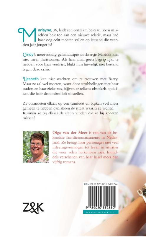 In 'De buren van de Brugstraat' van Olga van der Meer hadden drie vrouwen uit dezelfde straat nooit contact totdat ze elkaar op een tuinfeest van nieuwe buren leren kennen. Lorraine gaat trouwen, maar ze moet de bruiloft uitstellen als haar vader plotseling haar moeder verlaat. Cindy kan niet meer voor haar zwaargehandicapte dochtertje zorgen en zal haar in een gezinsvervangend tehuis moeten plaatsen. Marlayne leidt na jaren in een slechte relatie te hebben gezeten een eenzaam bestaan. Ze staat er helemaal alleen voor. Of toch niet?