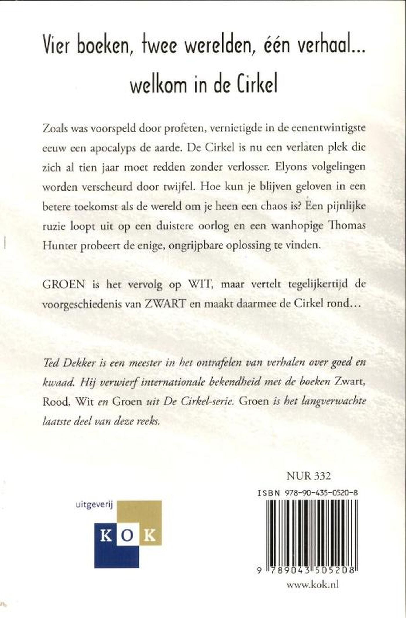 werelden ligt in zijn handen. In Groen is de Cirkel een verlaten plek die zich al tien jaar moet redden zonder verlosser. Elyons volgelingen worden verscheurd door twijfel. Hoe kun je blijven geloven in een betere toekomst als de wereld om je heen een chaos is? Dekker is niet bang dit soort vragen op