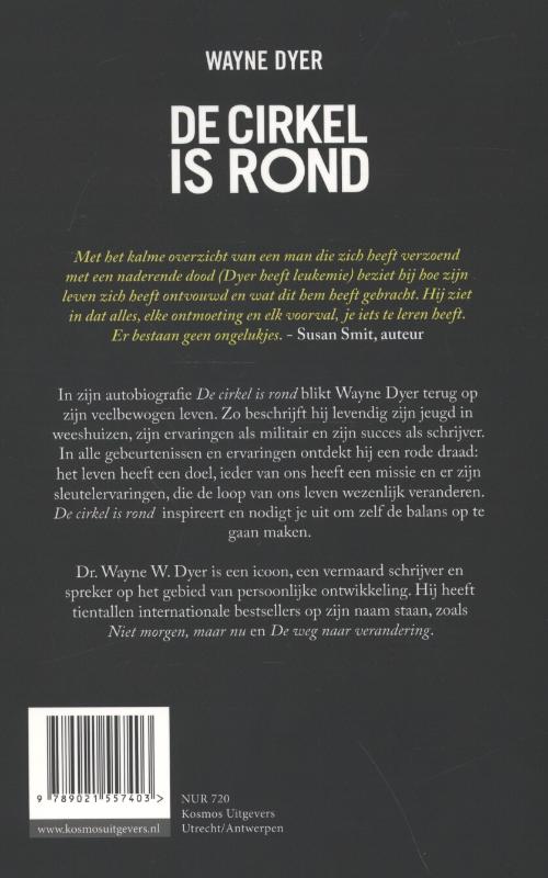 'De cirkel is rond' is het laatste en complete boek van Wayne Dyer. In 'De cirkel is rond' blikt Wayne Dyer terug op zijn veelbewogen leven. Aan de hand van persoonlijke verhalen, anekdotes en ontboezemingen geeft Dyer inzicht in de levenslessen of de synchroniciteit die daarmee verbonden zijn. En dan blijkt dat niets in het leven voor niets is geweest!