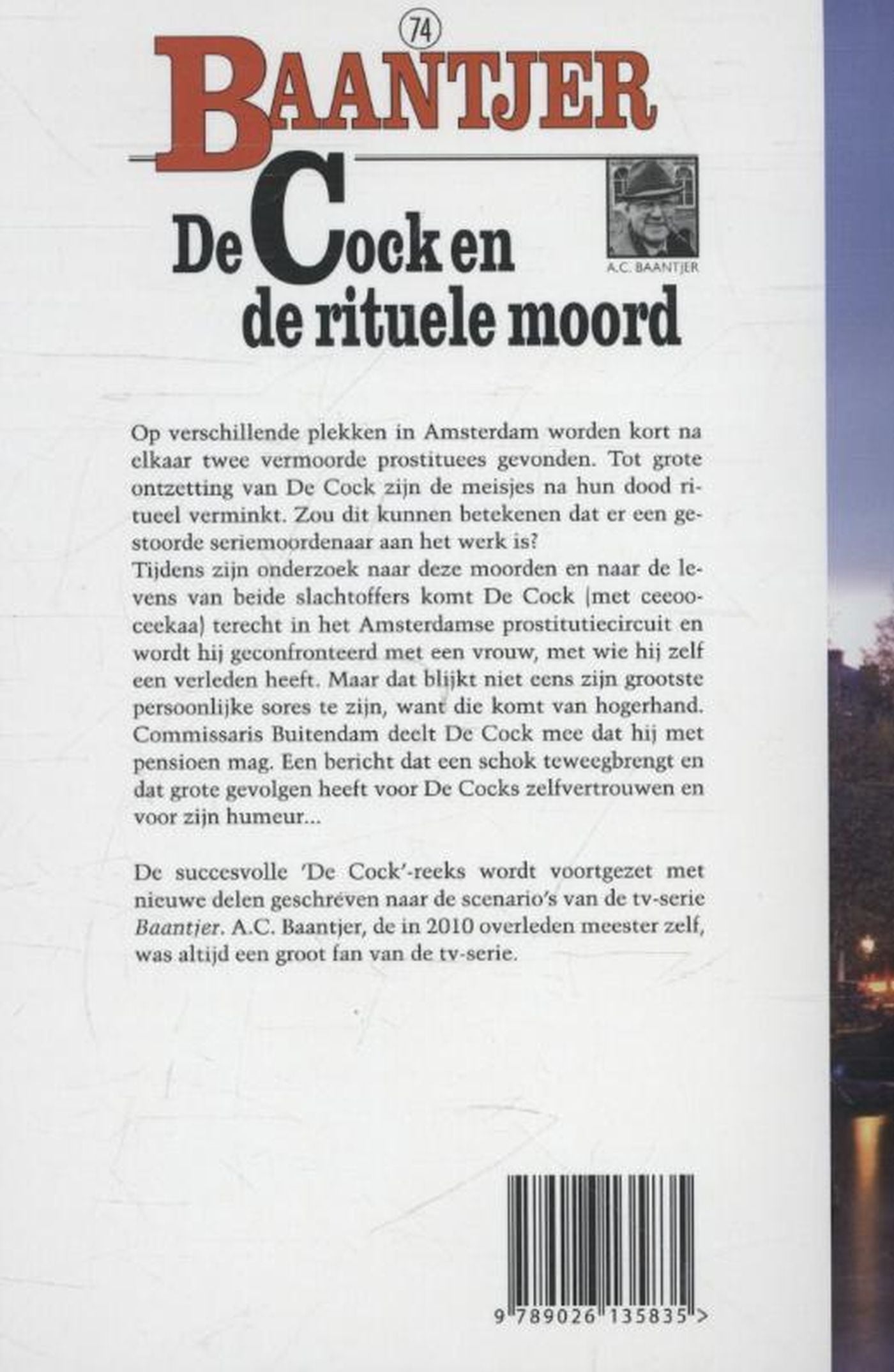 Deel 74 in de Baantjer-serie, ‘De Cock en de rituele moord', met in de hoofdrol rechercheur De Cock en zijn assistent Vledder van bureau Warmoesstraat in Amsterdam.
