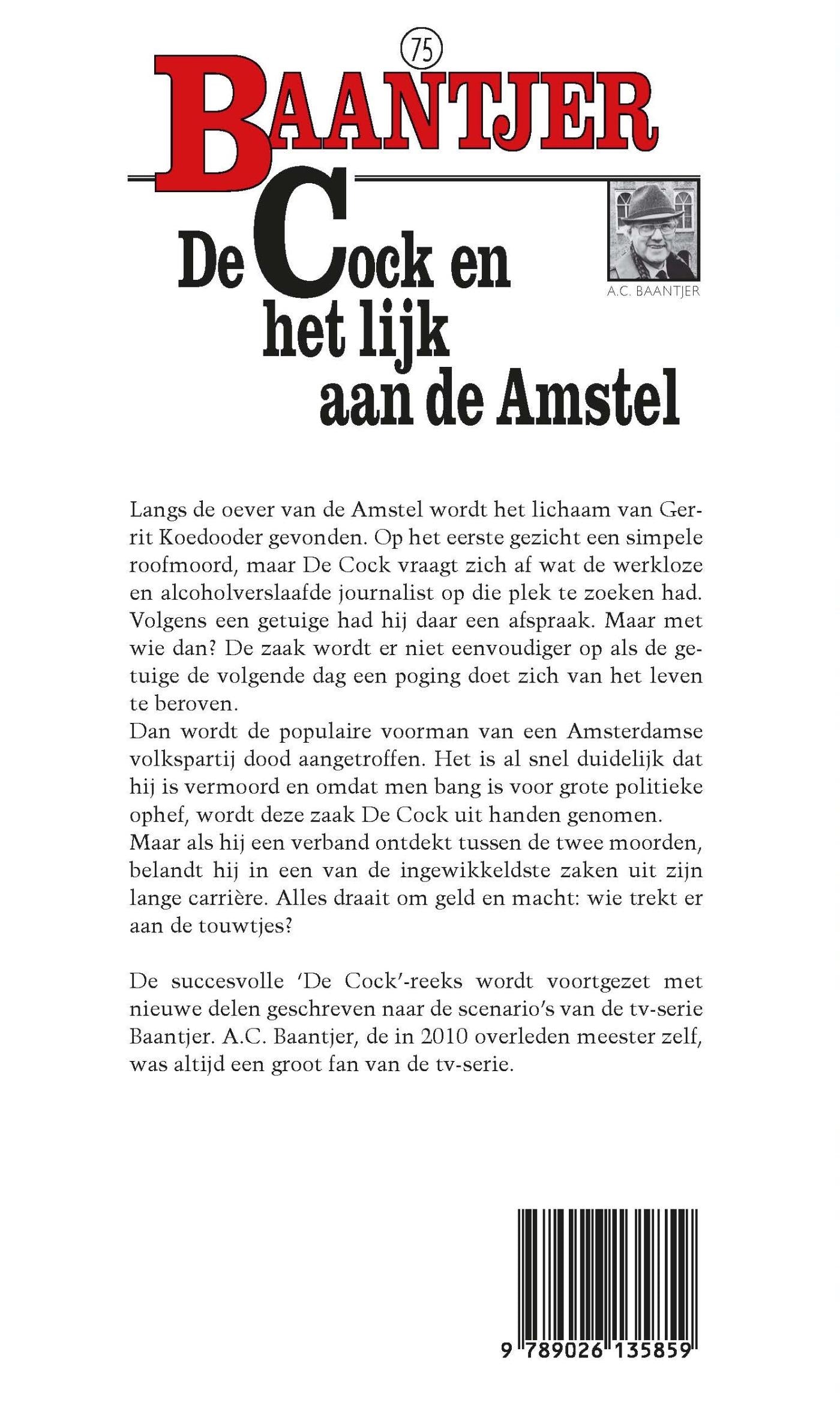 Deel 75 in de Baantjer-serie, ‘De Cock en het lijk aan de Amstel’, met in de hoofdrol rechercheur De Cock en zijn assistent Vledder van bureau Warmoesstraat in Amsterdam.