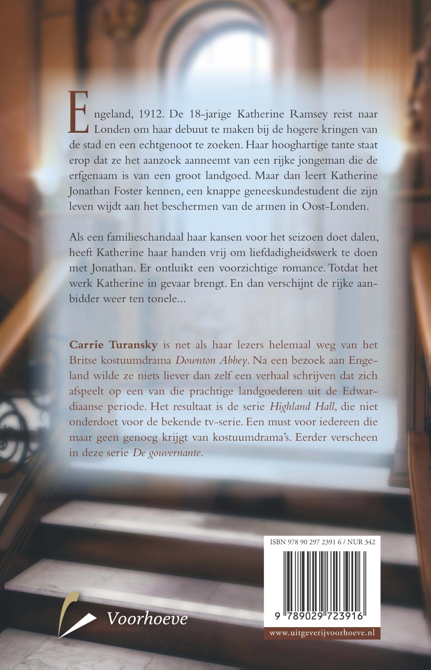 Carrie Turansky is net als haar lezers helemaal weg van het Britse kostuumdrama Downton Abbey. Na een bezoek aan Engeland wilde ze niets liever dan zelf een verhaal schrijven dat zich afspeelt op een van die prachtige landgoederen uit de Edwardiaanse periode. Het resultaat is de serie Highland Hall, voor iedereen die maar geen genoeg krijgt van kostuumdrama’s. ‘De debutante’ is het tweede deel in deze serie, eerder verscheen ‘De gouvernante’.
