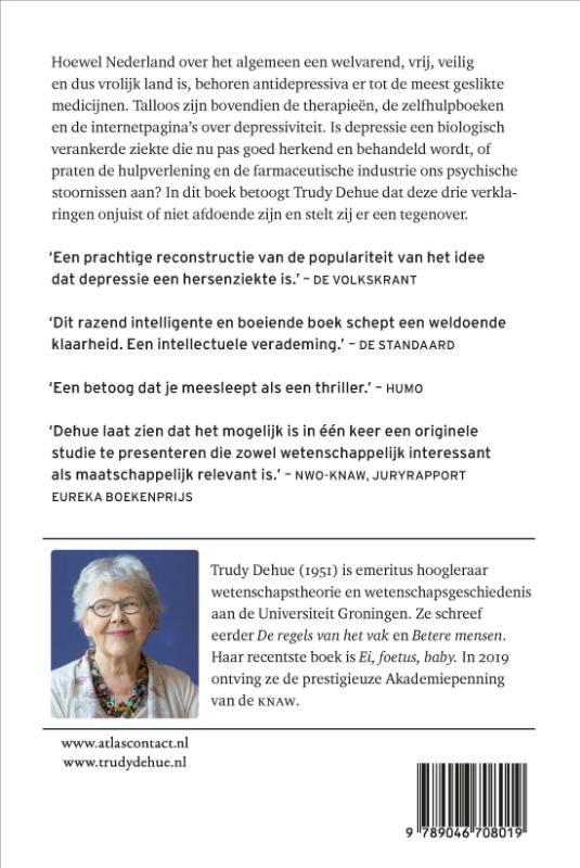 In 'De depressie-epidemie' constateert Trude Dehue dat hoewel Nederland over het algemeen een welvarend, vrij, veilig en dus vrolijk land is, antidepressiva er tot de meest geslikte medicijnen behoren. Is depressie een biologisch verankerde ziekte, die nu pas goed herkend en behandeld wordt, of praten de hulpverlening en de farmaceutische industrie ons psychische stoornissen aan? Talloos zijn bovendien de andere therapieën, de zelfhulpboeken en internetpagina’s over depressiviteit. Trudy Dehue betoogt dat de diagnose vaak onjuist is of niet afdoende, en stelt er andere tegenover.