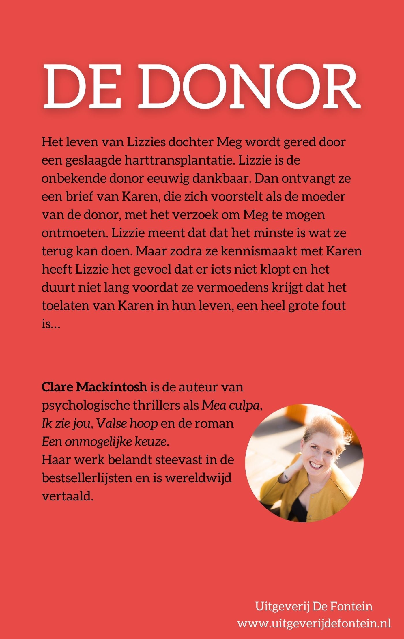 Clare Mackintosh is de auteur van psychologische thrillers als Mea culpa, Ik zie jou, Valse hoop en de roman Een onmogelijke keuze. Haar werk belandt steevast in de bestsellerlijsten en is wereldwijd vertaald.