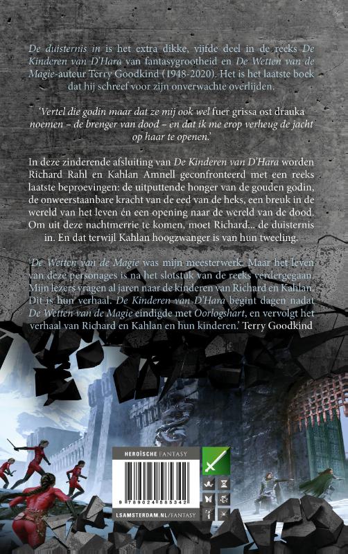 Deze zinderende afsluiting van De Kinderen van D’Hara is het laatste boek dat Goodkind schreef voor zijn onverwachte overlijden in september 2020. Richard Rahl en Kahlan Amnell worden geconfronteerd met een laatste beproeving. Een breuk in de wereld van het leven. Een opening naar de wereld van de dood. Om deze apocalyptische nachtmerrie onder ogen te komen, moet Richard... de duisternis in.