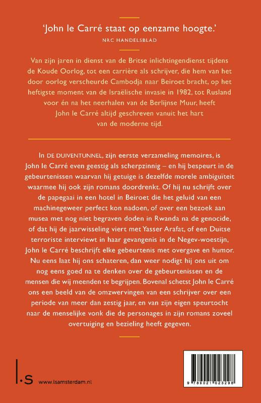 In De duiventunnel – Memoires van een meesterverteller haalt bestsellerauteur John le Carré herinneringen op uit zijn rijke verleden in dienst van de British Foreign Service en MI6. Als een moderne James Bond schrijft hij over de Koude Oorlog, terrorisme en corruptie.