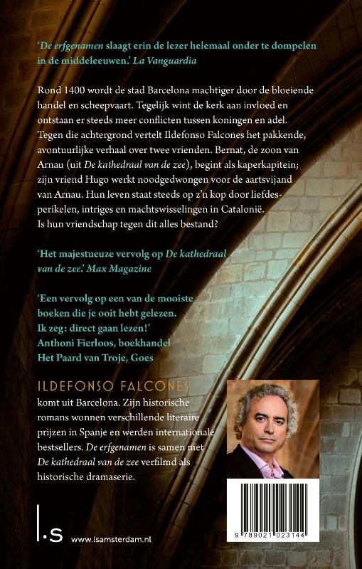 De erfgenamen van Ildefonso Falcones is het majestueuze vervolg op de bestseller De kathedraal van de zee, maar is volledig los daarvan te lezen. Vrijheid en de ongewisse strijd om het bestaan zijn de hoofdthema’s in dit boek. De setting is intrigerend: rond 1400 wordt de stad Barcelona steeds machtiger door de bloeiende handel en scheepvaart. Tegelijk wint de kerk aan invloed en is er voortdurend strijd tussen zowel edelen en koningen van de verschillende rijken, als tussen die edelen en koningen onderling.