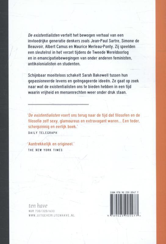 Schijnbaar moeiteloos schakelt Sarah Bakewell tussen hun gepassioneerde levens en geëngageerde ideeën. Bakewell gaat op zoek naar wat de existentialisten ons te bieden hebben in een tijd waarin vrijheid en mensenrechten weer onder druk staan. Deze pageturner brengt perfecte mix van biografieën en ideeën.
