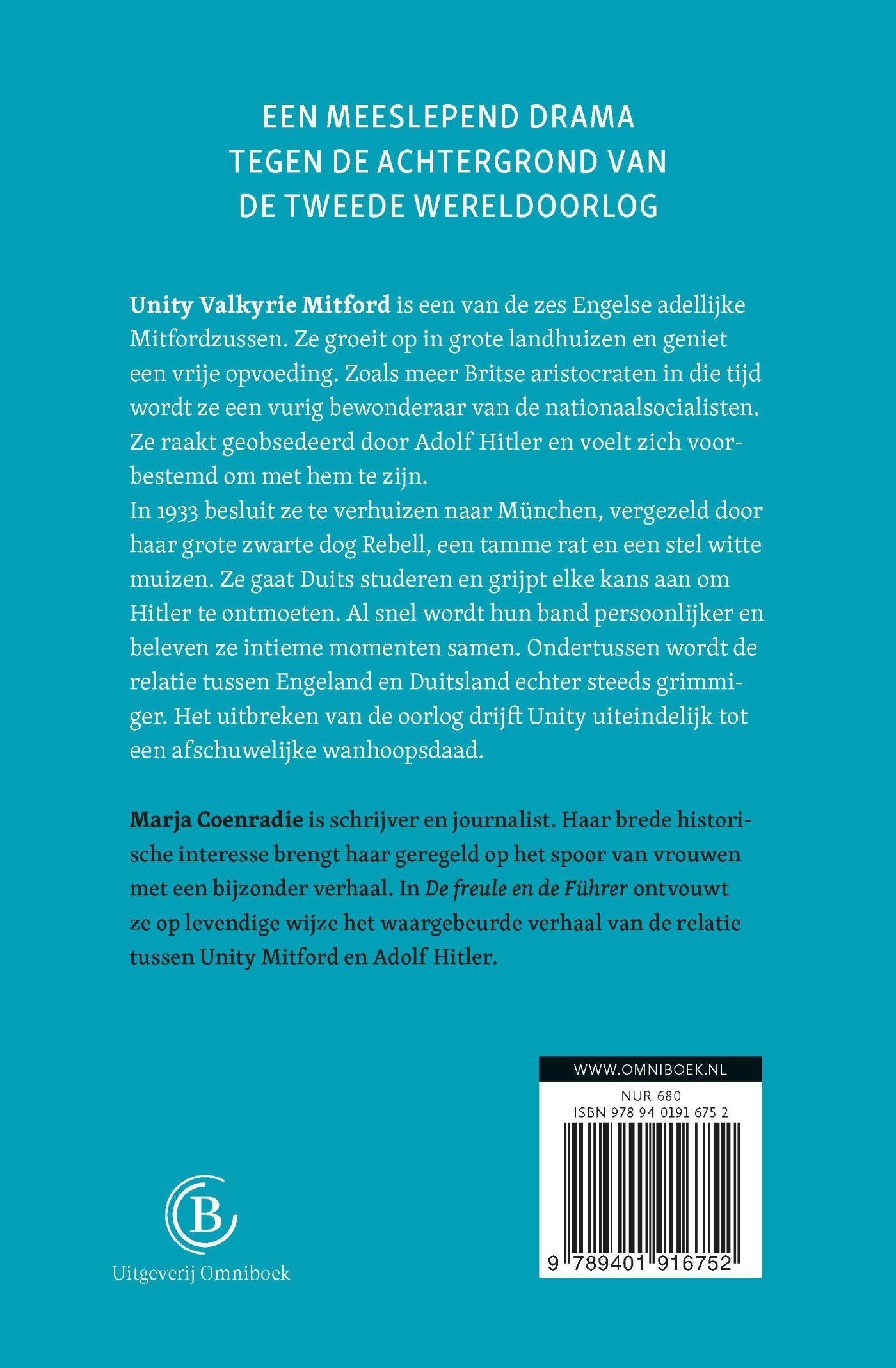 In 'De freule en de Führer' beschrijft Marja Coenradie het waargebeurde verhaal van de onwaarschijnlijk relatie tussen Unity Mitford en Adolf Hitler. Unity Valkyrie Mitford is een van de zes Engelse adellijke Mitfordzussen. Zoals meer Britse aristocraten in die tijd is ze een vurig bewonderaar van de nationaalsocialisten. Ze raakt geobsedeerd door Adolf Hitler en voelt zich voorbestemd om met hem te zijn. Ze grijpt elke kans aan om hem te ontmoeten en al snel wordt hun band persoonlijker en intiemer. Ondertussen wordt de relatie tussen Engeland en Duitsland echter steeds grimmiger. Het uitbreken van de oorlog drijft Unity tot een wanhoopsdaad. In het intrigerende 'De freule en de Führer' ontvouwt Marja Coenradie op levendige wijze de schokkende relatie tussen Unity en Hitler.