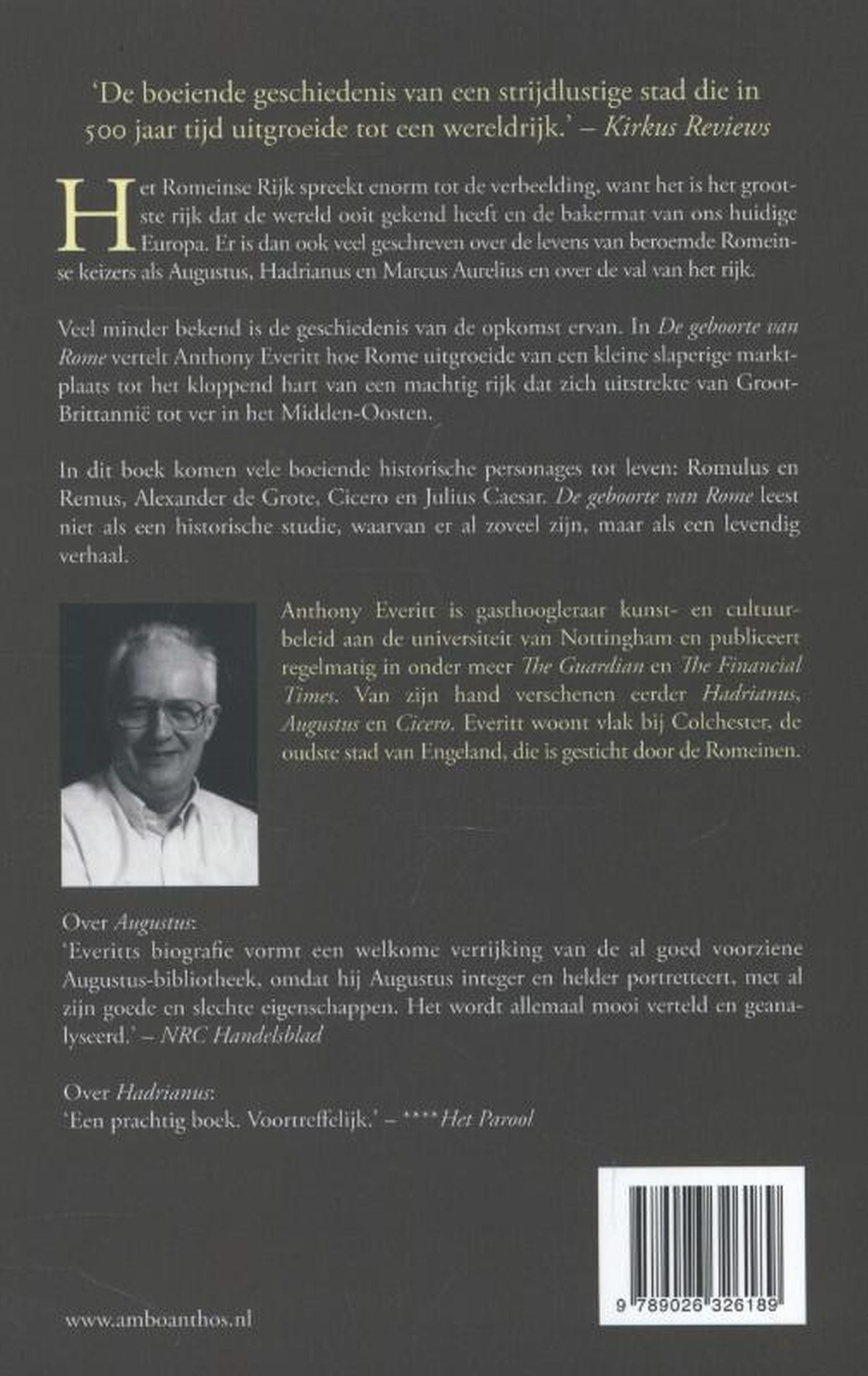 Veel minder bekend is de geschiedenis van de opkomst van het rijk. In De geboorte van Rome vertelt Anthony Everitt hoe Rome uitgroeide van een kleine slaperige marktplaats tot het kloppend hart van een machtig rijk dat zich uitstrekte van Groot-Brittannië tot ver in het Midden-Oosten.