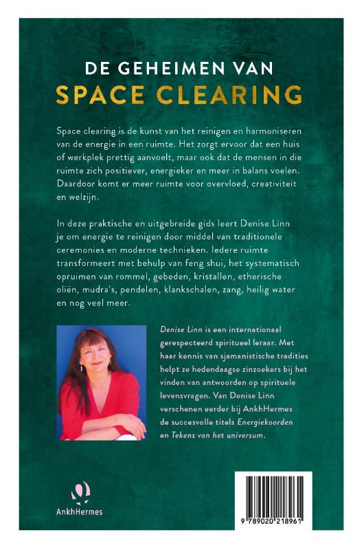 In 'De geheimen van space clearing' leer je van space clearing-expert Denise Linn de kunst van het reinigen en harmoniseren van de energie in een ruimte. Hierdoor gaan mensen zich positiever voelen; er komt balans in relaties en blokkades verdwijnen. Zo komt er ruimte voor overvloed, creativiteit en welzijn. In 'De geheimen van space clearing' leert Denise Linn je om energie te reinigen door middel van traditionele ceremonies en moderne technieken. Iedere ruimte transformeert met behulp van feng shui, opruimen, gebed, kristallen, essentiële oliën, mystieke mudra’s, wijwater, pendels en meer.