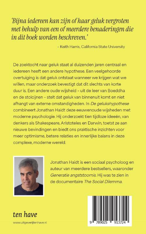 In De gelukshypothese combineert sociaal psycholoog Jonathan Haidt eeuwenoude wijsheden met moderne psychologie om de sleutel tot een gelukkiger leven te onthullen. Hij onderzoekt tien tijdloze ideeën en laat zien hoe we deze kunnen toepassen in onze hedendaagse wereld.