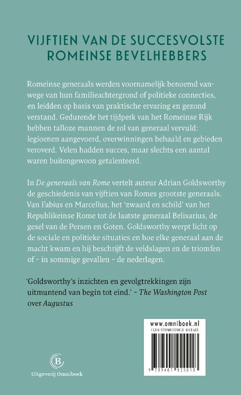 In ‘De generaals van Rome’ beschrijft de bekende historicus Adrian Goldsworthy de geschiedenis van vijftien van de succesvolste Romeinse bevelhebbers ooit, zoals Fabius en Marcellus, het ‘zwaard en schild’ van het Republikeinse Rome, en Belisarius, de gesel van de Persen en Goten.