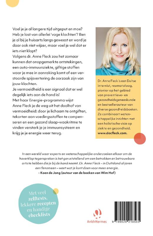 Volgens Anne Fleck liggen er aan onze vermoeidheid vaak tot nu toe ongekende, niet-erkende lichamelijke oorzaken ten grondslag. Kom erachter hoe die vermoeidheid veroorzaakt wordt en herken de symptomen. Als we er geen aandacht aan schenken, kunnen deze zelfs tot chronische aandoeningen uitgroeien. Je (chronische) moeheid is een signaal dat er wel degelijk iets aan de hand is.