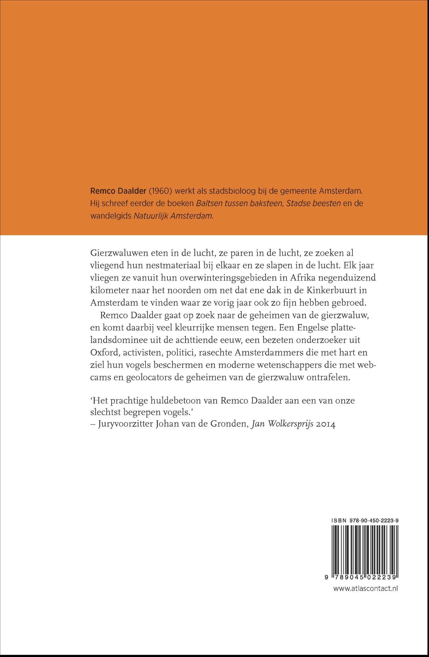 Remco Daalder gaat op zoek naar de geheimen van de gierzwaluw, en komt daarbij veel kleurrijke mensen tegen. Een Engelse plattelandsdominee uit de achttiende eeuw, een bezeten onderzoeker uit Oxford, activisten, politici, rasechte Amsterdammers die met hart en ziel hun vogels beschermen en moderne wetenschappers die met webcams en geolocators de geheimen van de gierzwaluw ontrafelen.