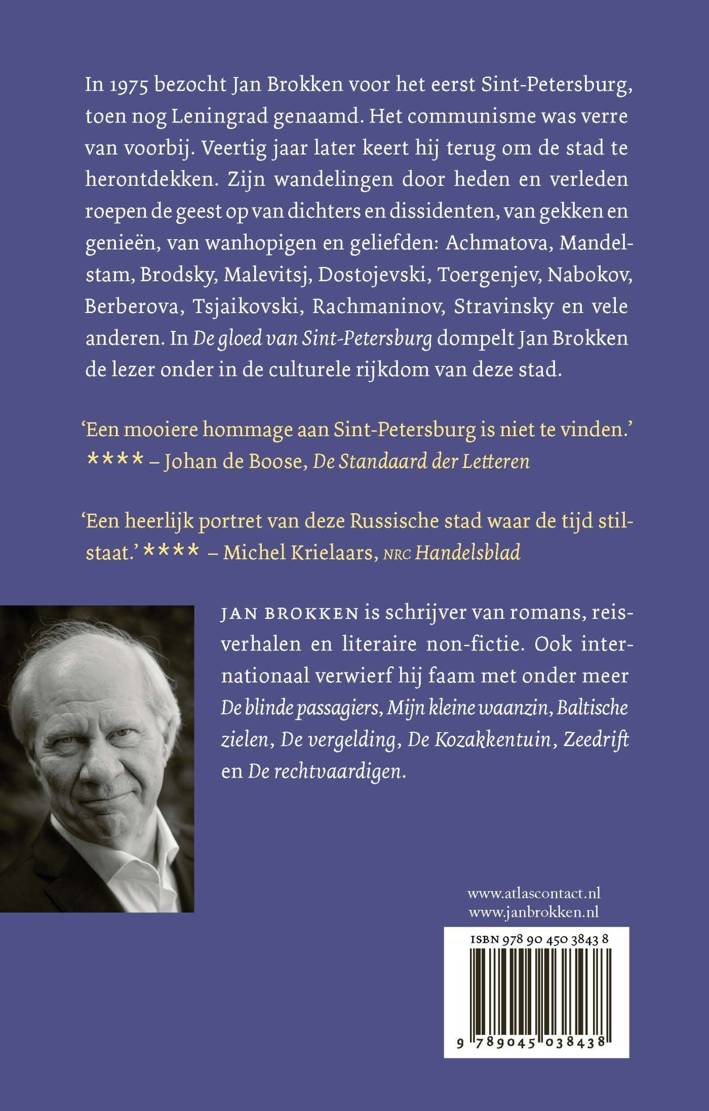 Ware Sint-Petersburg er niet geweest, dan had ik de aan de rivier sluimerende stad zelf uitgevonden, als een humeur dat voor eeuwig bij me past.’ In De gloed van Sint-Petersburg combineert Jan Brokken de adembenemende