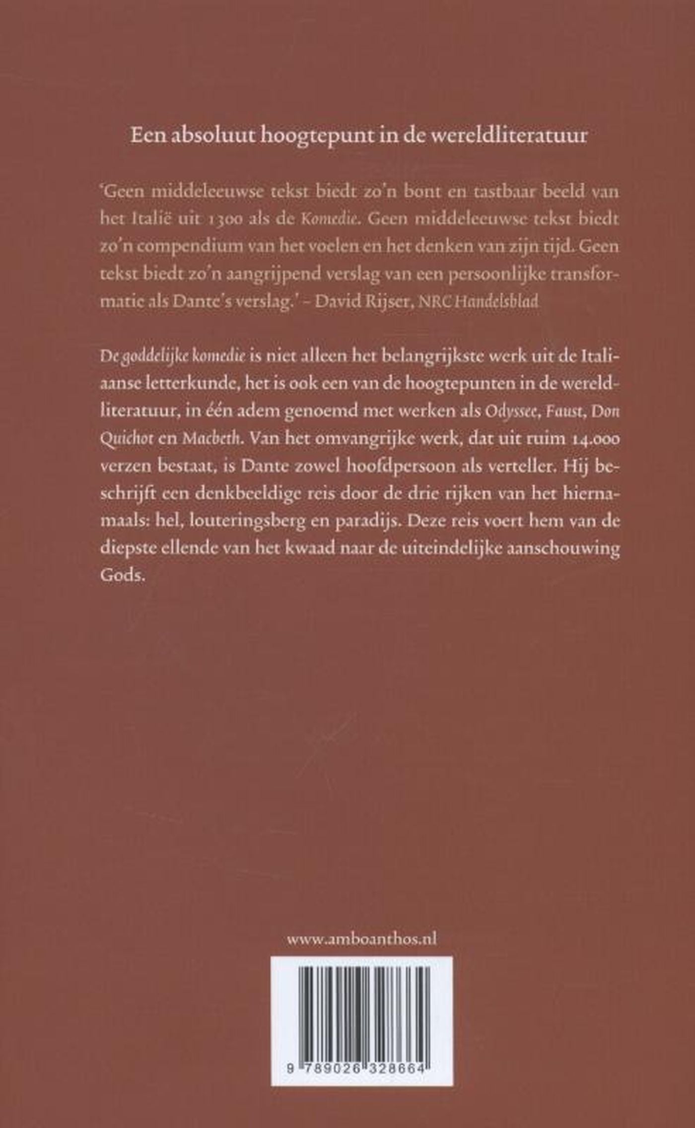 De goddelijke komedie is niet alleen het belangrijkste werk uit de Italiaanse letterkunde, het is ook een van de hoogtepunten van de wereldliteratuur, in één adem genoemd met werken als de Odyssee, Faust, Don Quichot en Macbeth.