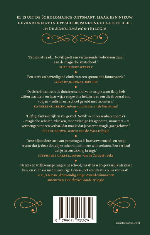 Het enige waar je nooit over praat als je in de Scholomance zit, is wat je zult doen als je eruit komt. El heeft op wonderbaarlijke wijze haar eindexamen gehaald. Samen met Orion en hun bondgenoten redde El de enclaves, maar nu is iemand anders van plan de enclaves te vernietigen. El is vastbesloten terug te keren naar de Scholomance, ook al is de kans dat ze er ooit weer uit zal komen afschuwelijk klein.