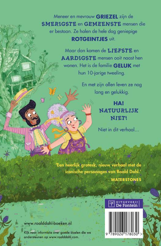 'Een heerlijk nieuw grotesk verhaal met de iconische personages van Roald Dahl, waarin een misselijkmakend perfecte familie naast het knorrige stel komt wonen.' - WATERSTONES