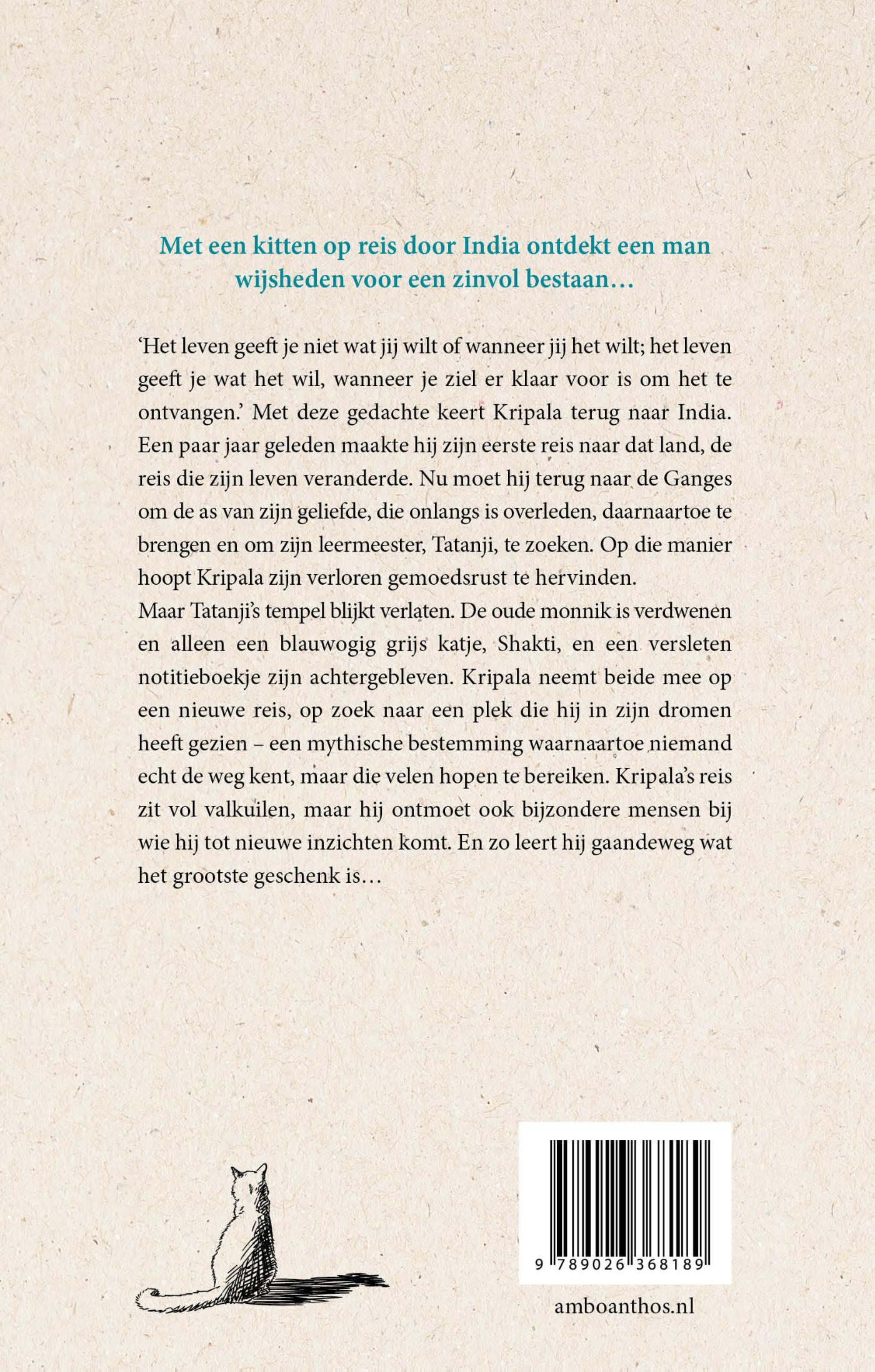 Een paar jaar geleden maakte Kripala zijn eerste reis naar India, de reis die zijn leven veranderde. Nu moet hij terug naar de Ganges om het stoffelijk overschot van zijn geliefde, die onlangs is overleden, naar de rivier te brengen en om zijn leraar, Tatanji, te zoeken. Door zijn leraar te vinden hoopt Kripala ook zijn verloren gemoedsrust terug te vinden. Maar de tempel blijkt verlaten. De oude monnik is verdwenen en alleen een blauwogig grijs katje, Shakti, en een versleten notitieboekje zijn achtergebleven. Kripala neemt beide mee op een nieuwe reis, op zoek naar een plek die hij in zijn dromen heeft gezien - een mythische bestemming waarnaartoe niemand echt de weg kent, maar die velen hopen te bereiken. Kripala's reis zit vol valkuilen, maar hij ontmoet ook bijzondere mensen bij wie hij tot nieuwe inzichten komt. En zo leert hij gaandeweg wat het grootste geschenk is…