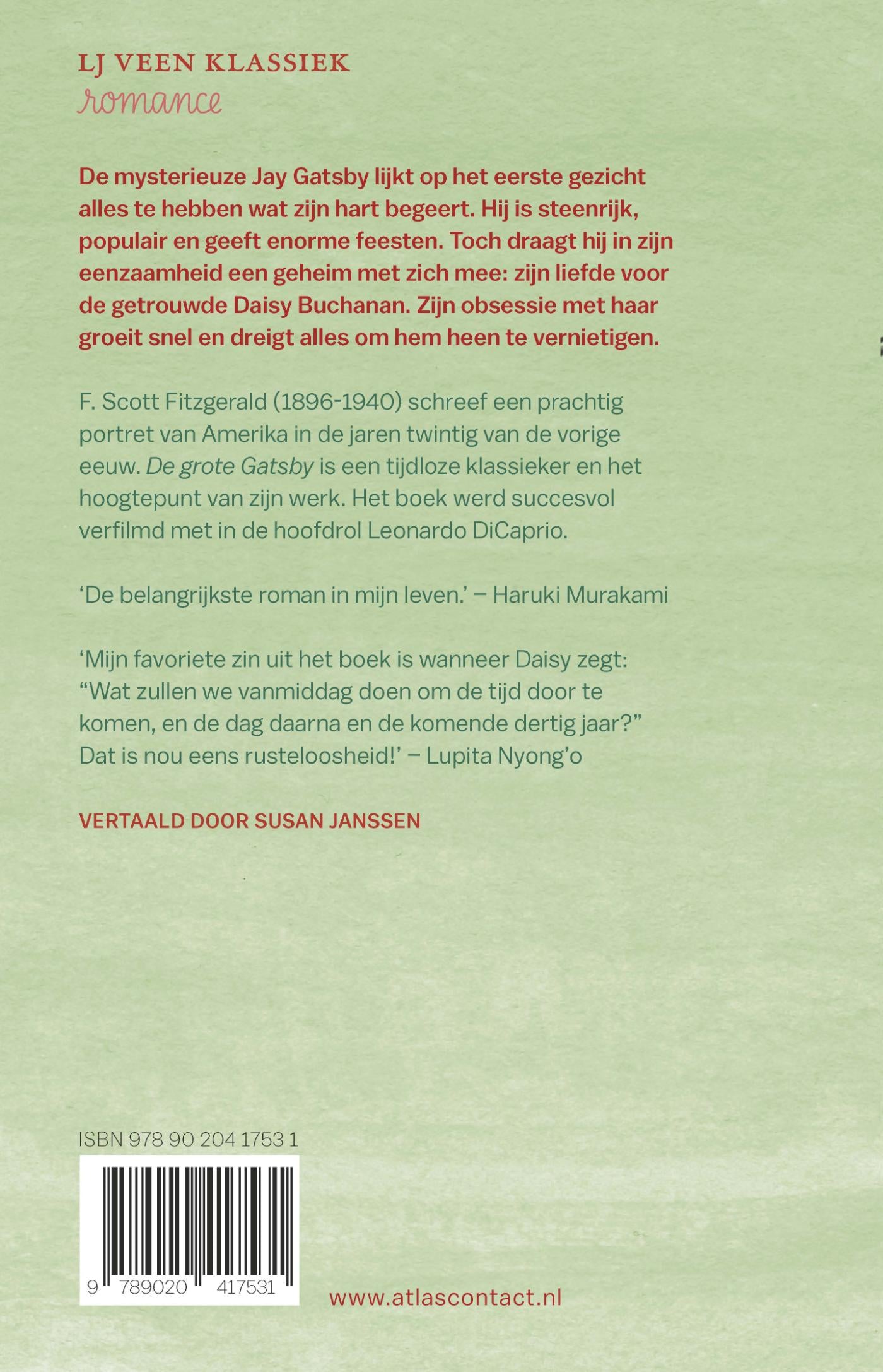 De grote Gatsby is het hoogtepunt uit het oeuvre van F. Scott Fitzgerald (1896-1940), en een schitterend geschreven portret van Amerika in de jaren twintig van de vorige eeuw.