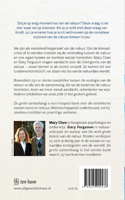 We zijn als mensheid losgeraakt van de natuur. Om de klimaatcrisis af te wenden moeten wij de verbinding tussen de natuur en ons eigen fysieke en mentale welzijn herstellen. Mary Clare en Gary Ferguson vragen aandacht voor de intelligentie van de natuur – zowel binnen in als buiten onszelf. Ze komen tot een fundamenteel inzicht: we staan niet los van de natuurlijke wereld.